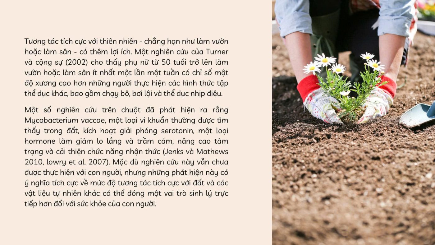 Bạn có biết trong đất tự nhiên có những con vi khuẩn nhỏ xíu giúp bạn khỏe mạnh và hạnh phúc hơn, giúp giảm stress và trầm cảm?