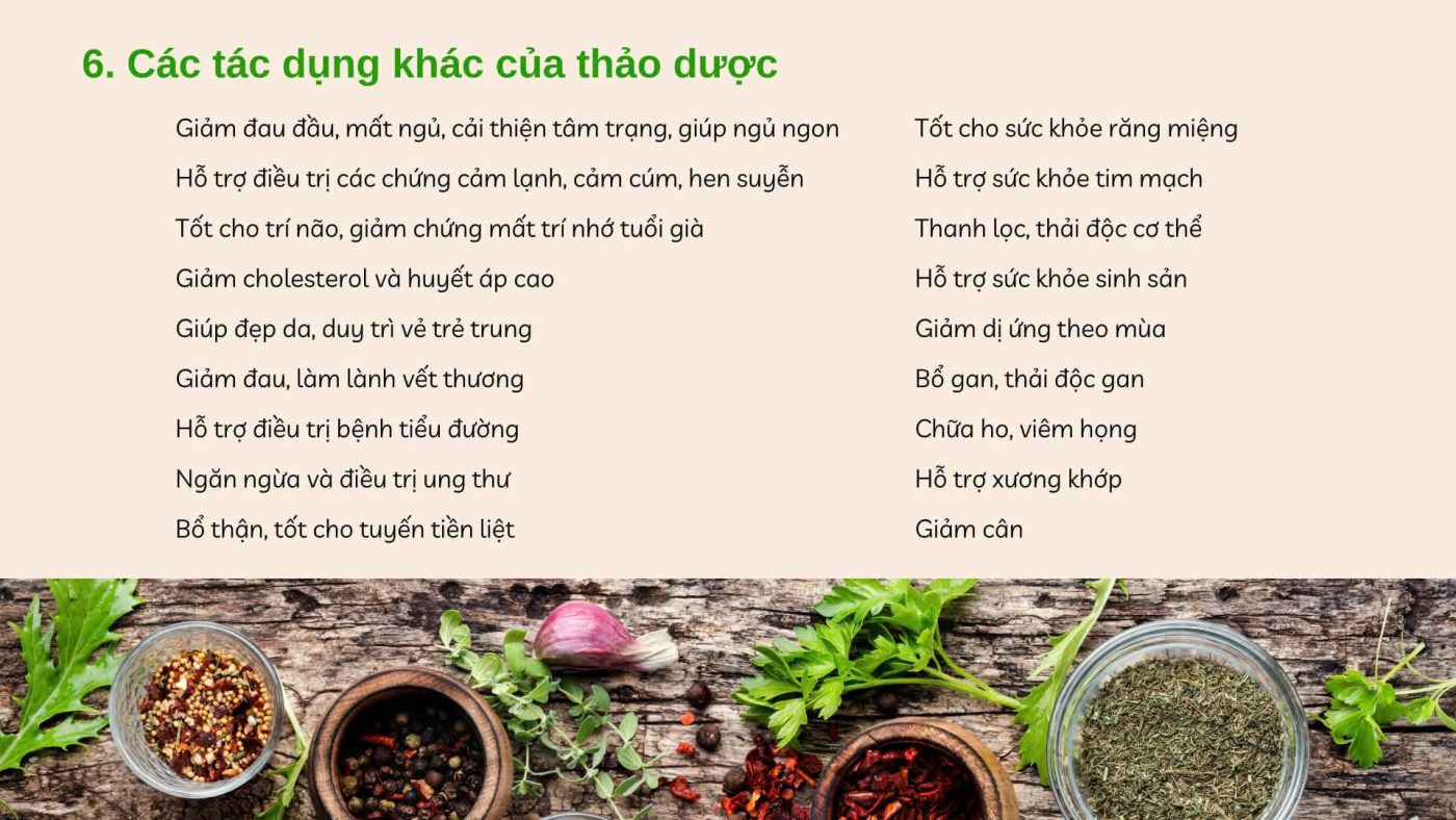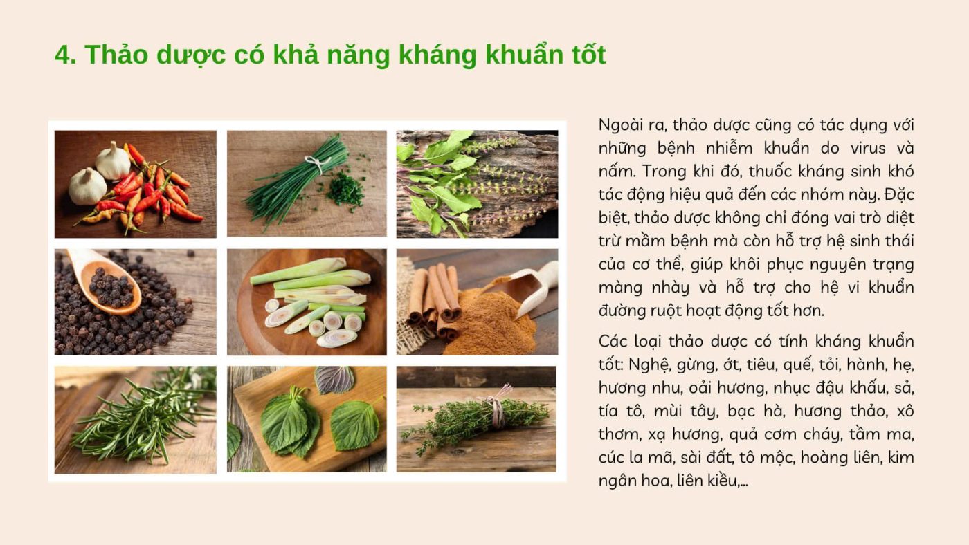 Các nhóm thảo mộc tốt cho việc kháng viêm và kháng khuẩn.