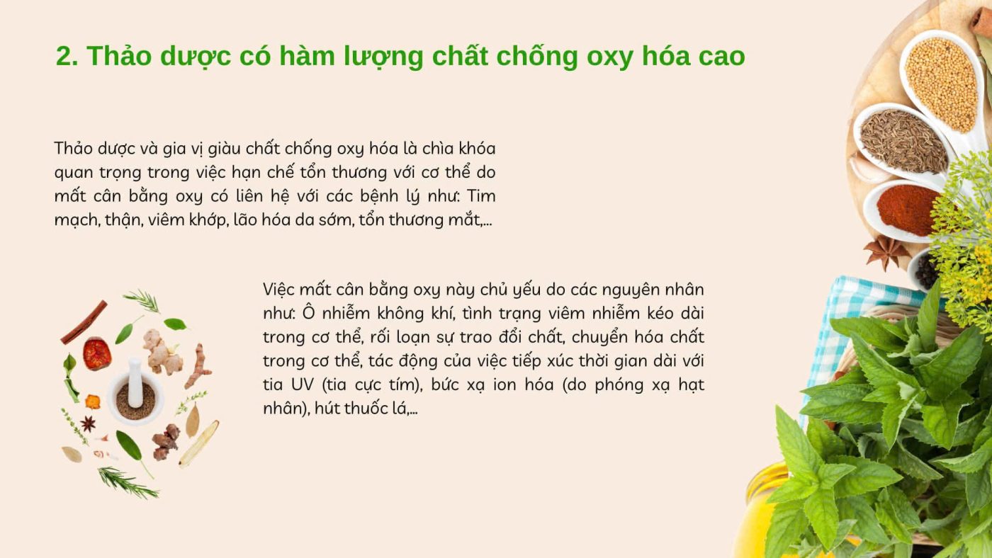 Các nhóm thảo mộc tốt cho việc chống oxy hóa